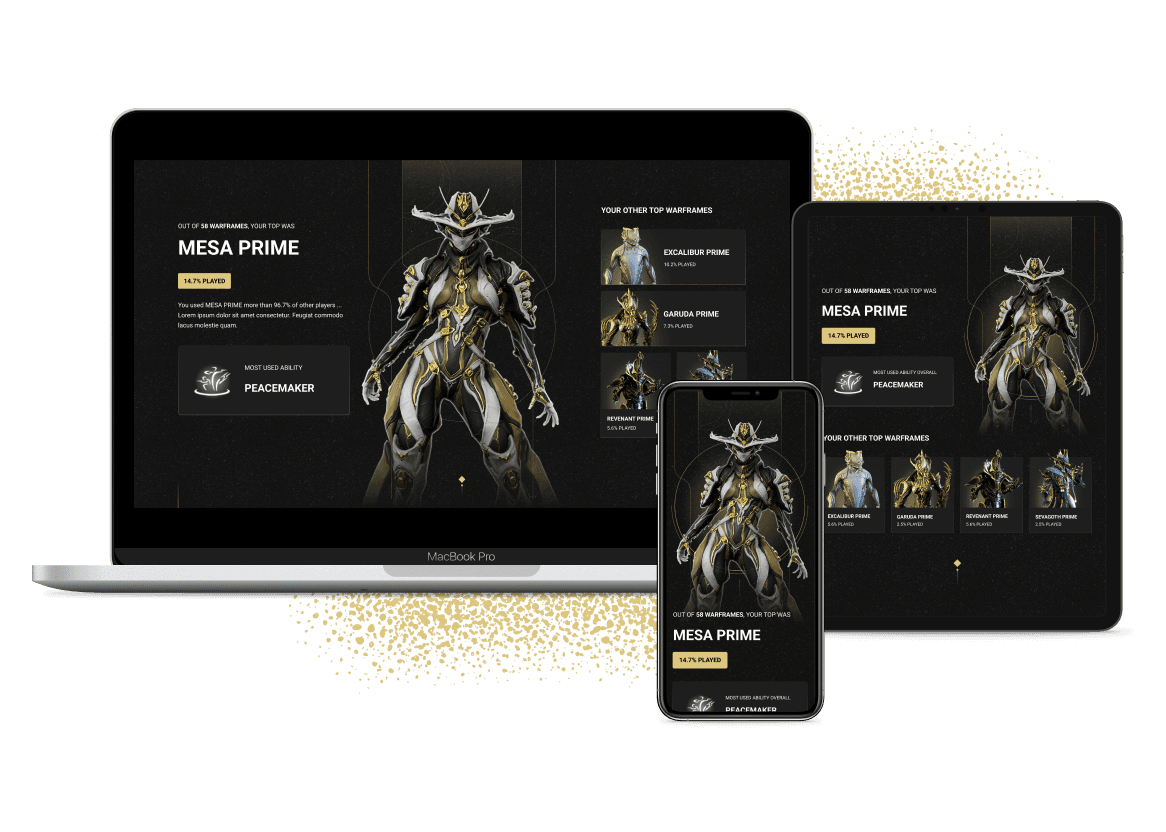 Designing an interactive game statistic site for Warframe’s new, current and returning players.