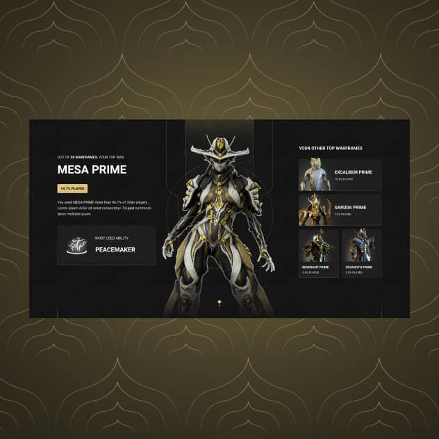 Designing a responsive web experience for new, current and returning Warframe players to see their 2024 in-game statistics in an interactive, and exciting way.