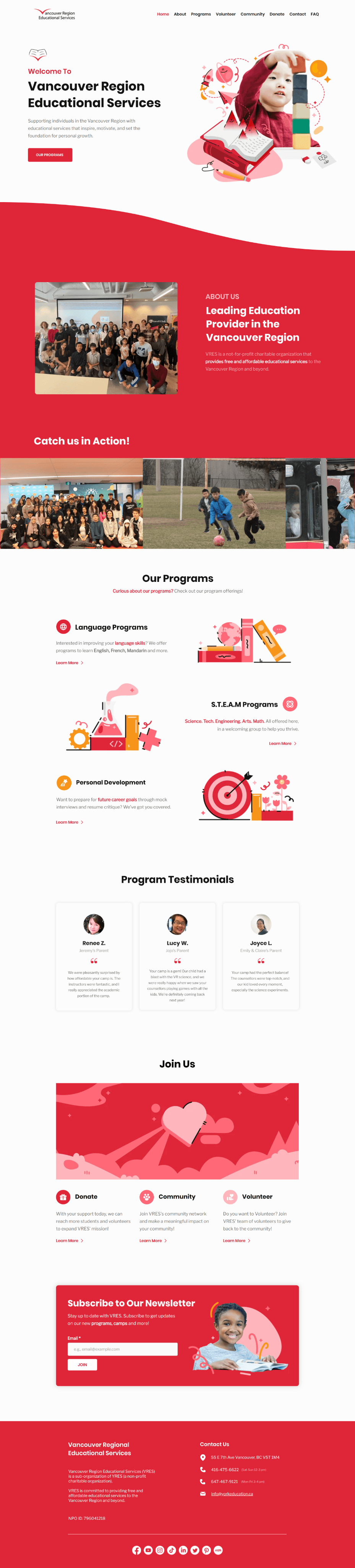 The goal of VRES is to clearly showcase all of our program offerings, mainly the free programs (language, STEAM, personal development), and highlight other opportunities such as volunteering.