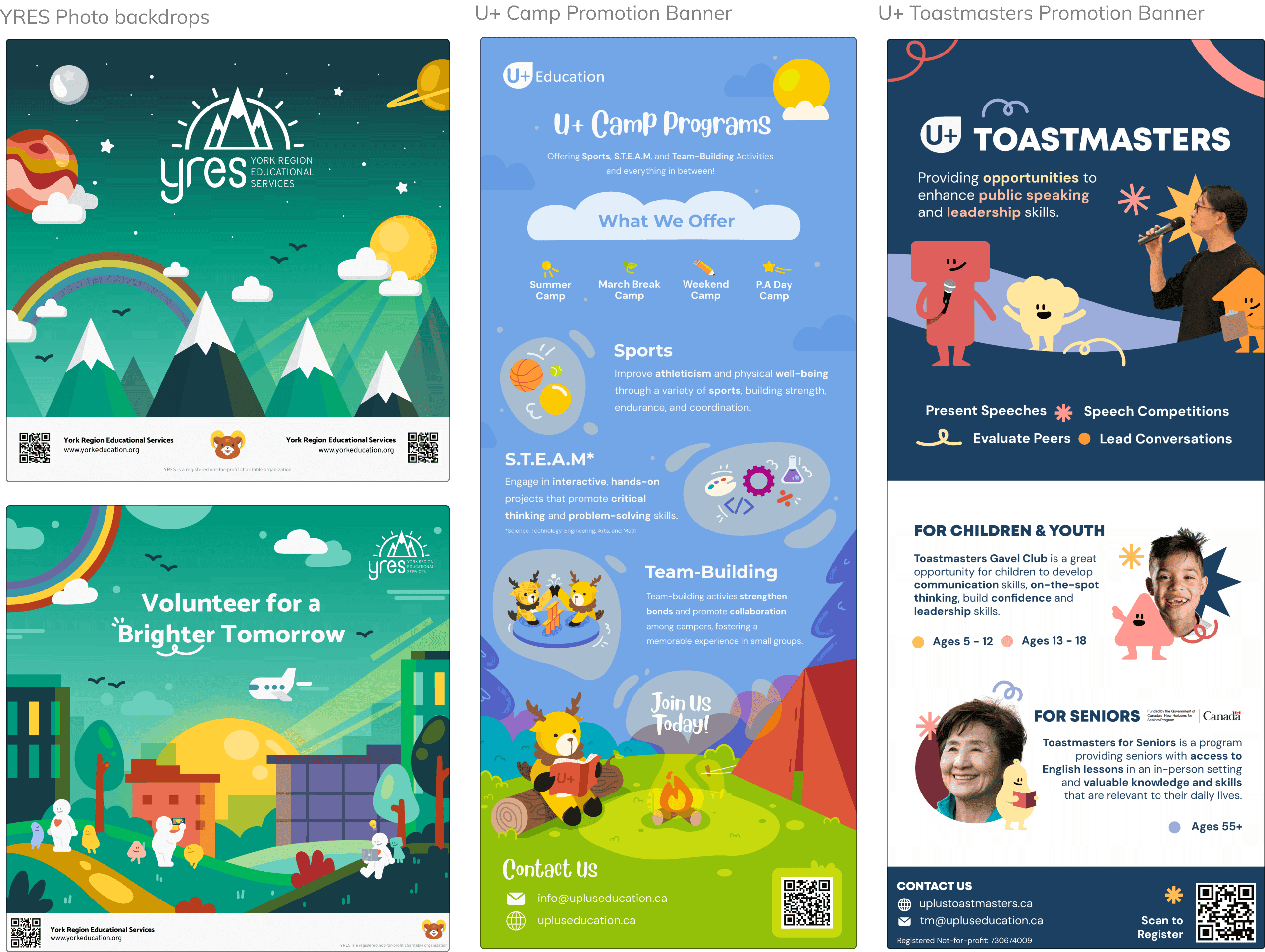 This section will walk you through some of the graphics and print projects I made during my time at U+ Education.
