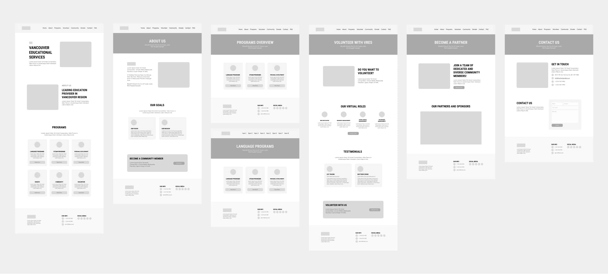 After creating the sketches, I created the wireframes for the pages.