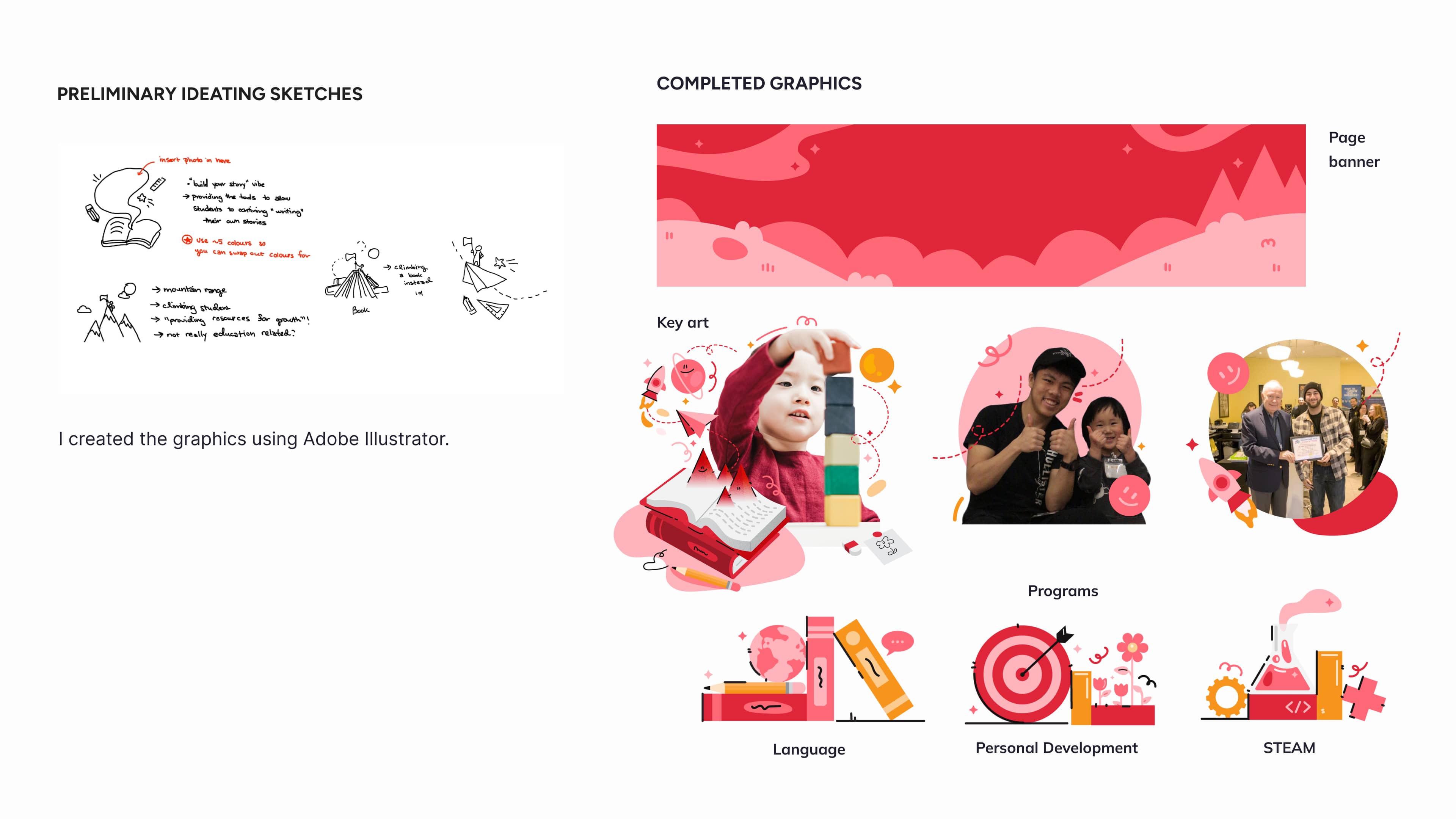 Using the keywords, I created graphics to match the bright, playful atmosphere I was envisioning for the site.